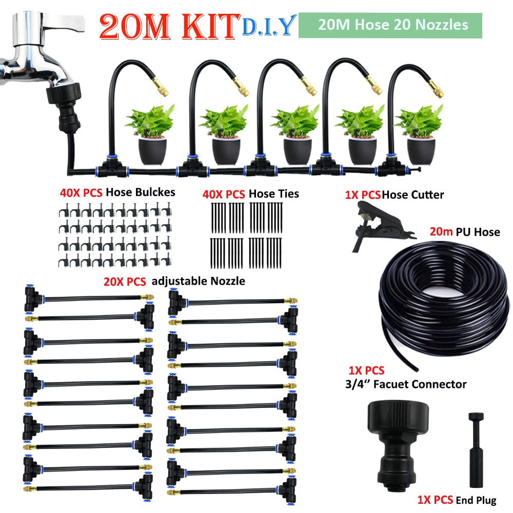 The new material PE pipe can withstand 10 kg of pressure. Copper sprinklers and tubes have a long service life and good atomization effect.